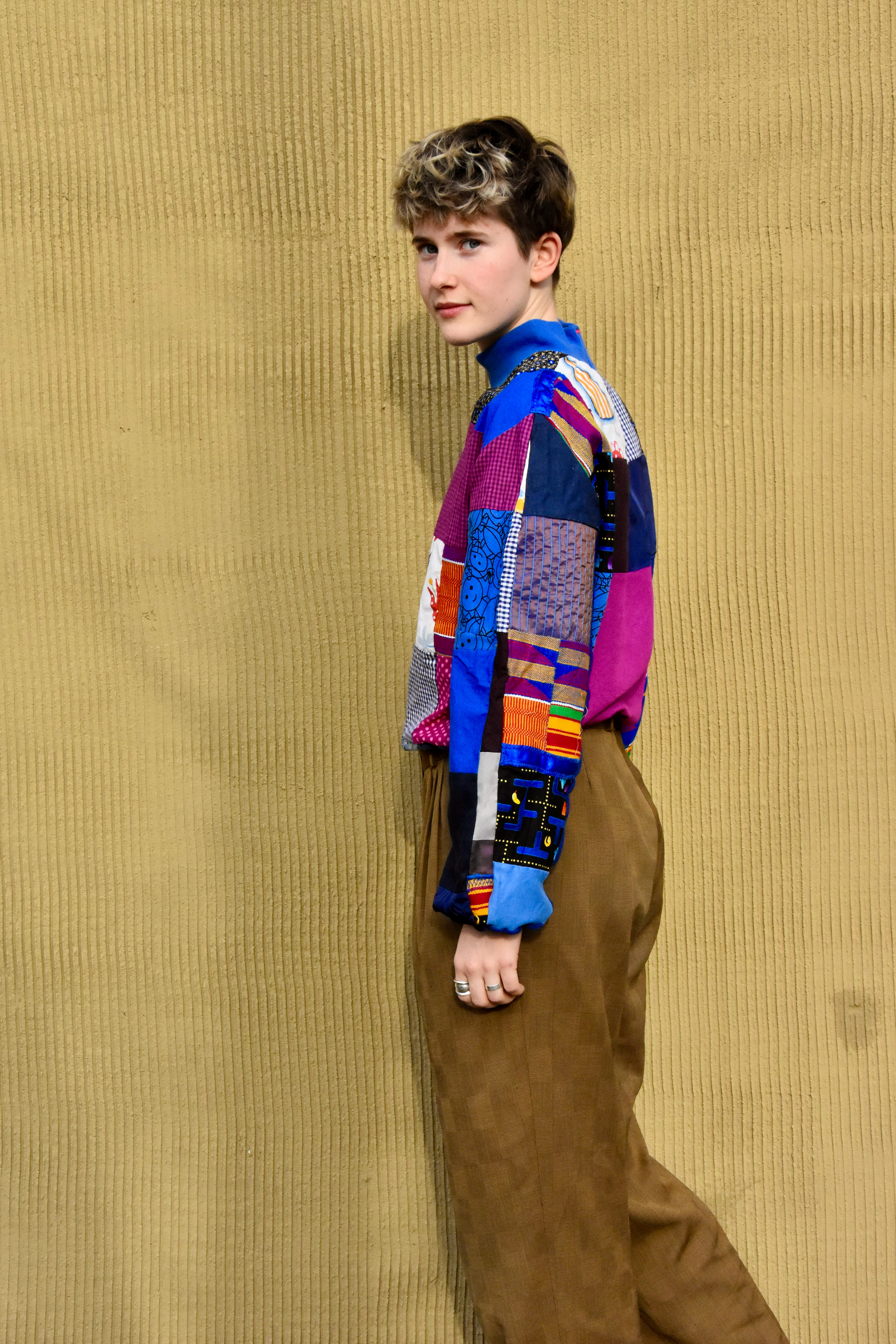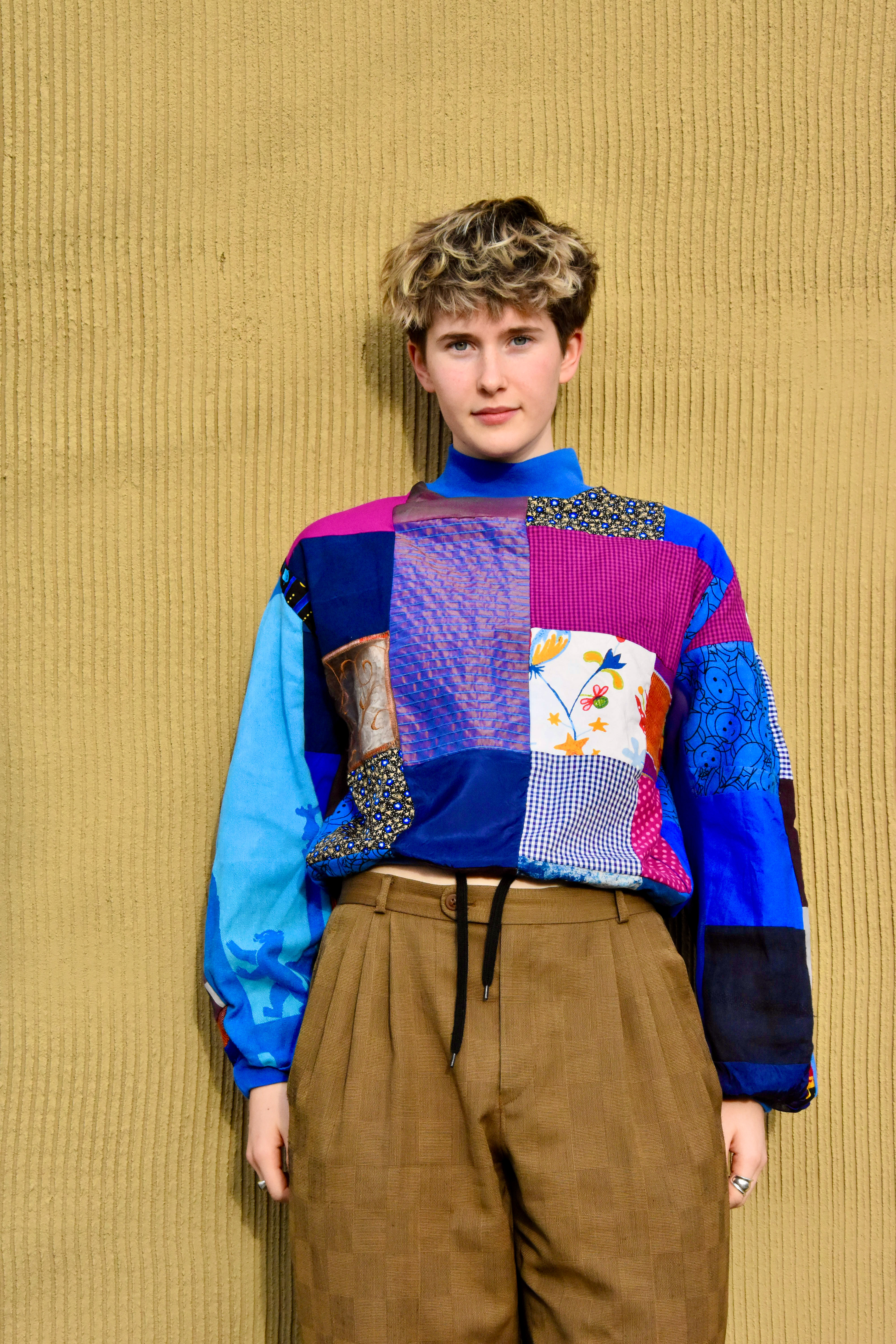 Pulloverlänge (Schulter bis unteres Bündchen): 56 cm; Armlänge (Kragen bis Armbündchen): 75 cm; Hüftumfang (ungedehnter Zustand und verstellbar): 88 cm; Brustumfang: 118 cm