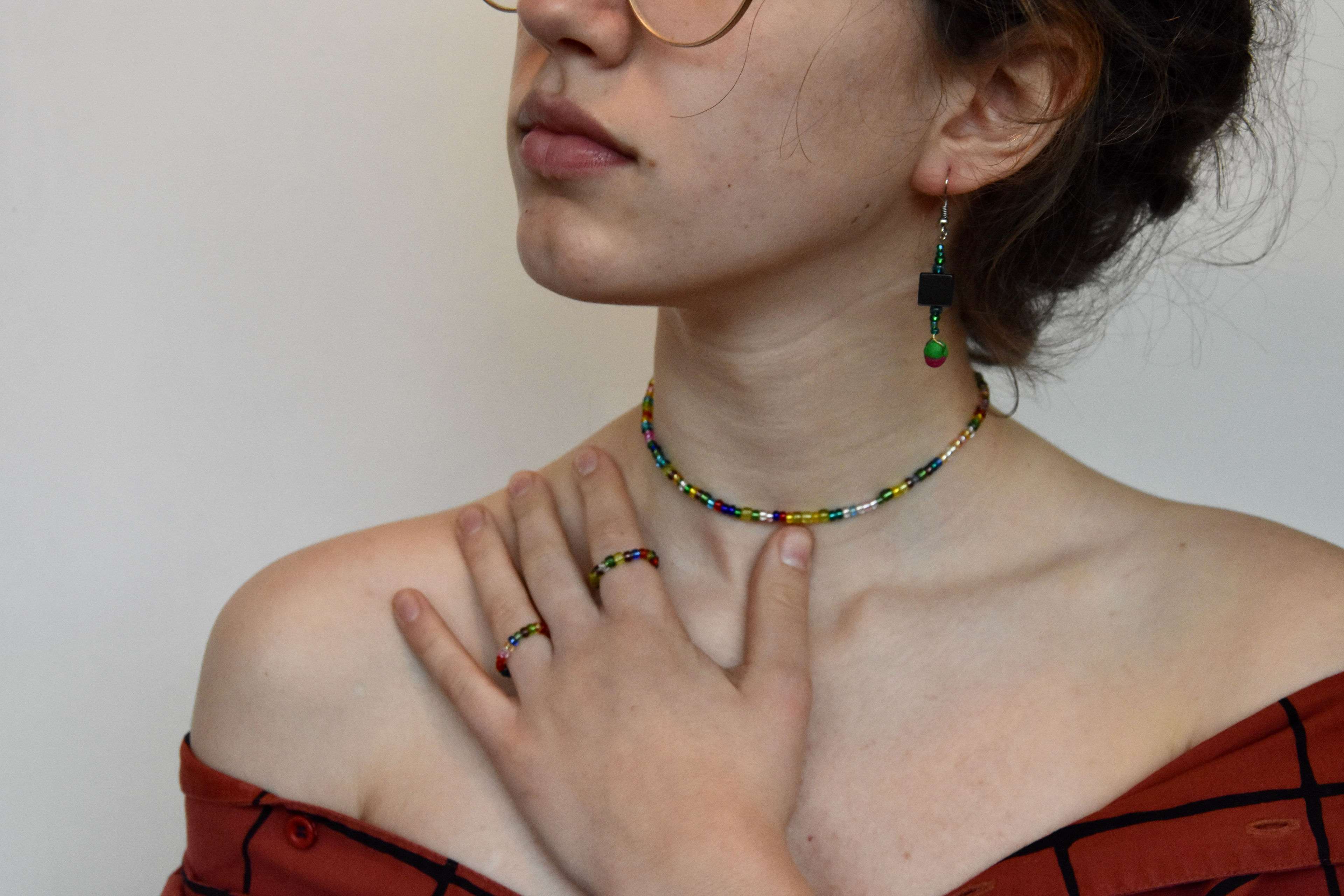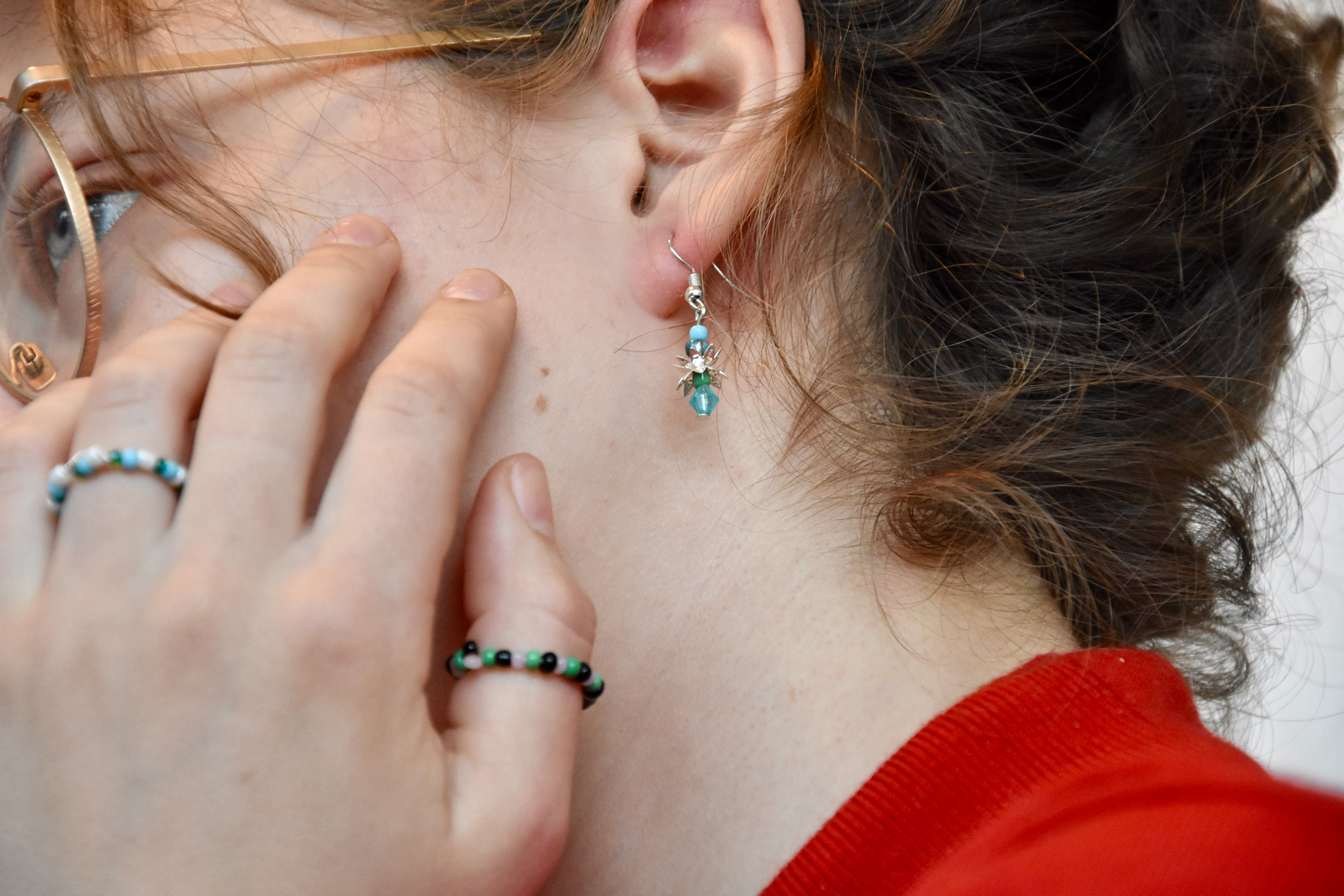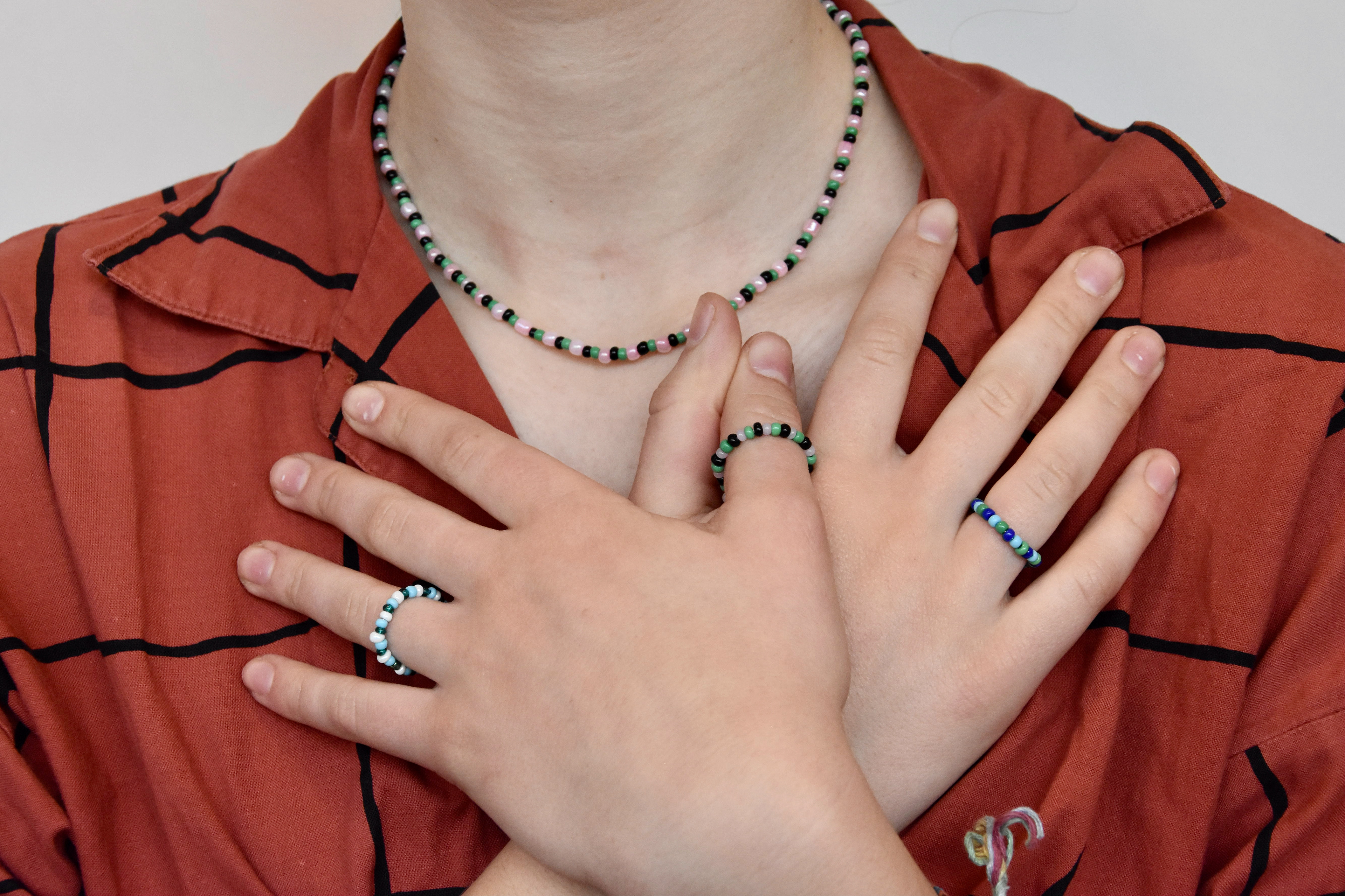 Handgefertigte Ketten, Ohrringe und Ringe in verschiedensten Größen und Formen.
